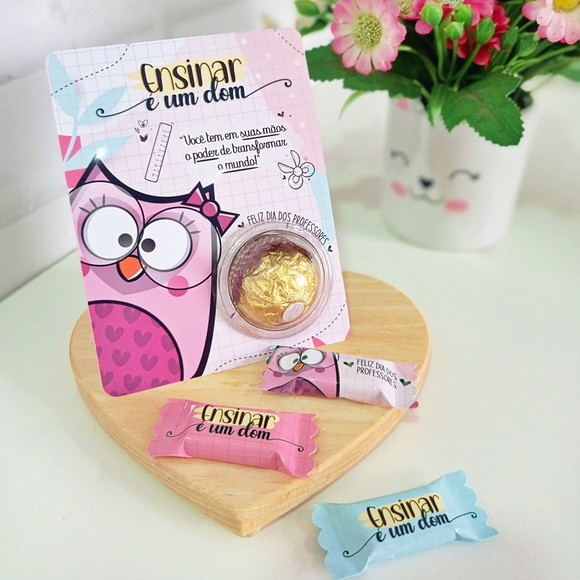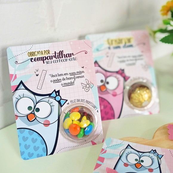50 Lembrancinha Mimo para o dia dos professores – Cartão com Blister para Docinho