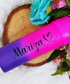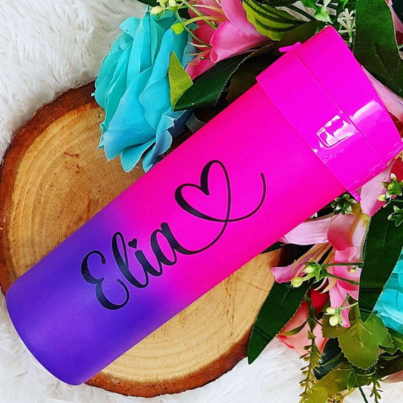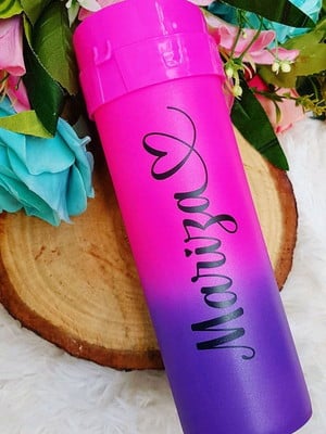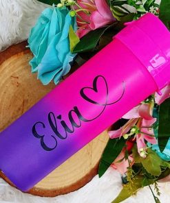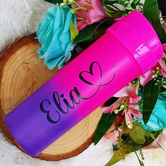 Garrafa de água degradê arco iris personalizada + nome e coração