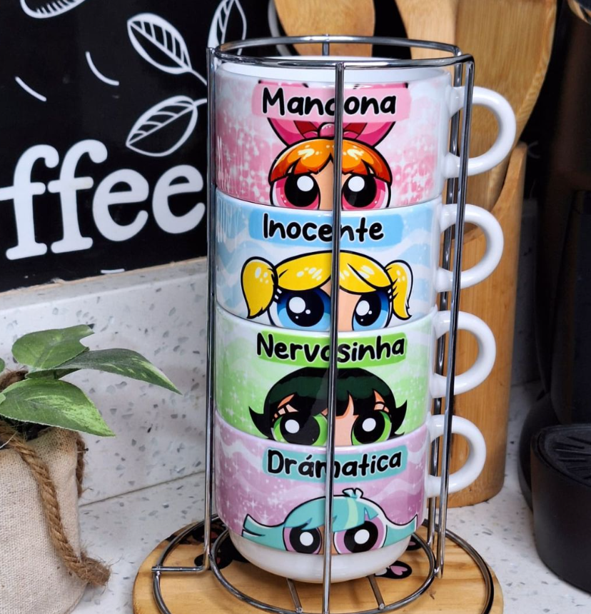 Torre de Xícaras Personalizadas 150ml com Suporte Metálico