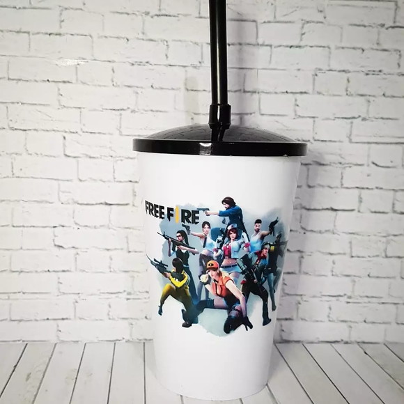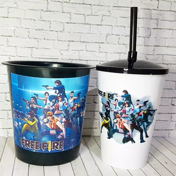 kit cineminha Balde de pipoca de 1 litro + copo twister 550 ml tema free fire