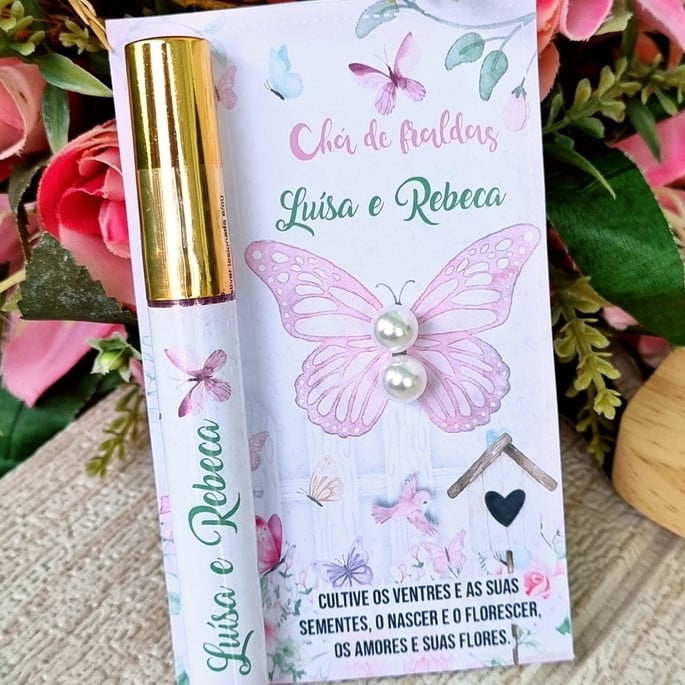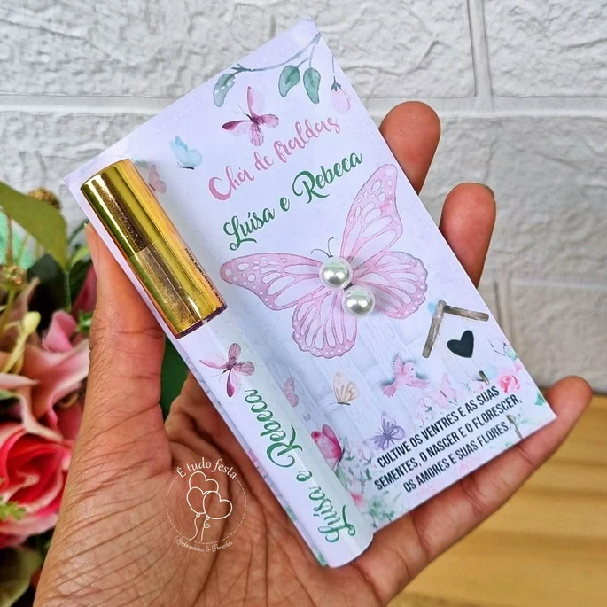 lip gloss labial +brinco personalizado para chá de bebê/ chá de fraldas.