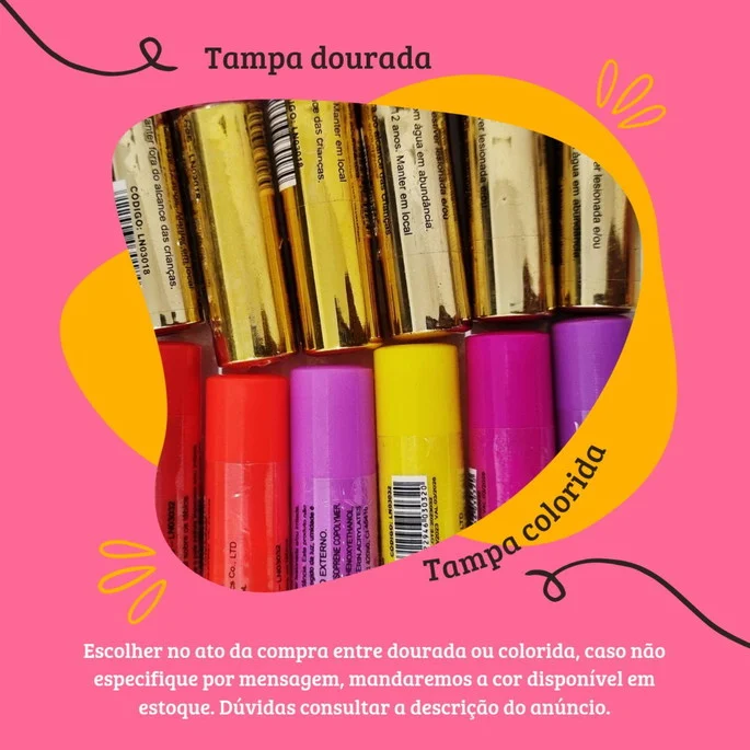 II – caso não seja escolhida nenhuma cor de tampa mandaremos a que tive em estoque podendo ser a colorida ou a dourada, é muito importante que no ato da compra seja enviada essas informações!