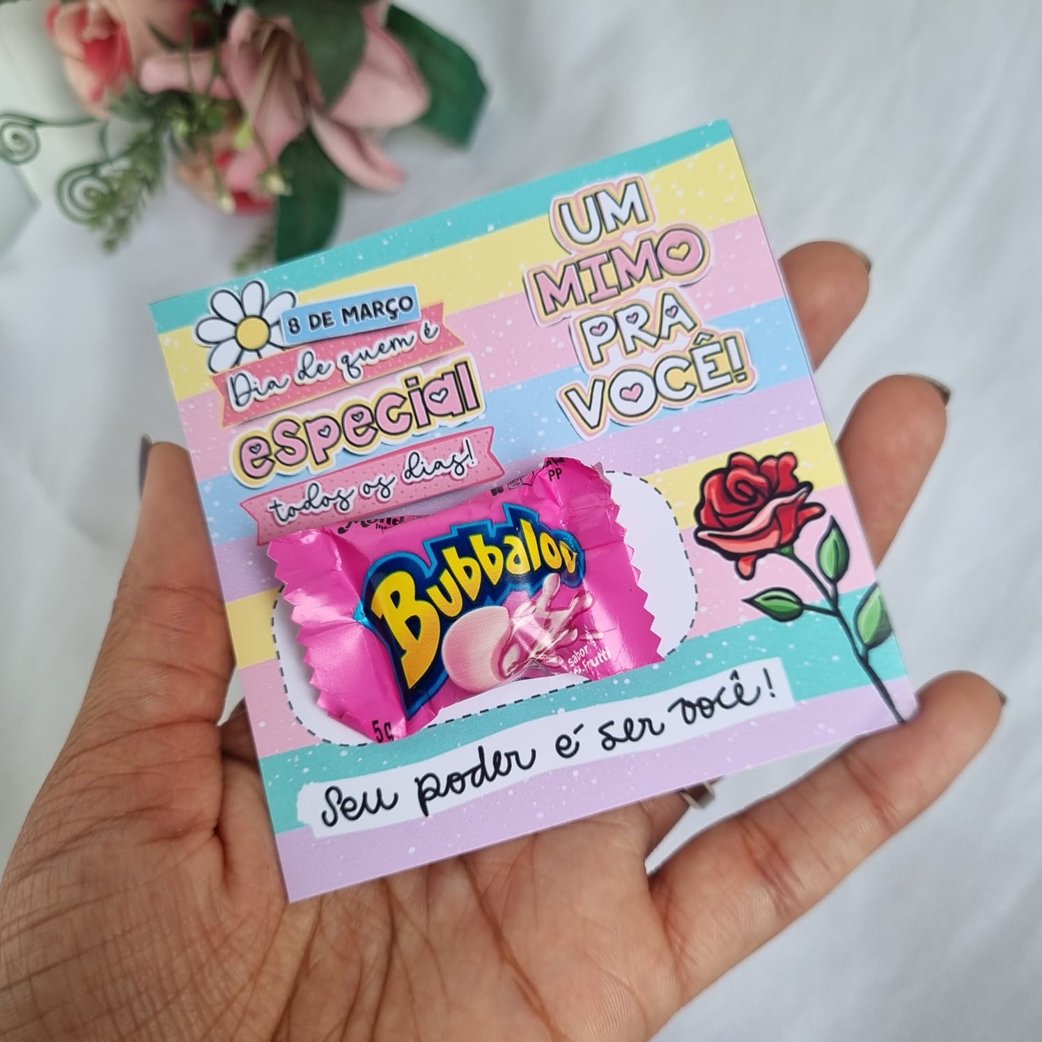 bubbaloo na tag personalizado -Dia das mulheres